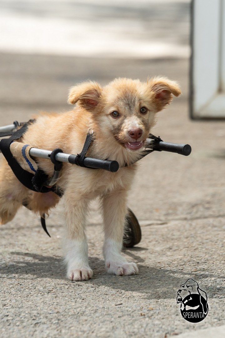 He has already become the darling of the shelter, because no one can resist such a face, and what’s more, Șumi is incredibly sweet and lovable. To support his development, because Șumi is still growing, he needs daily physiotherapy sessions, special care and feeding, just like the other paraplegic puppies in the shelter. Please continue to support them, any contribution is welcome.