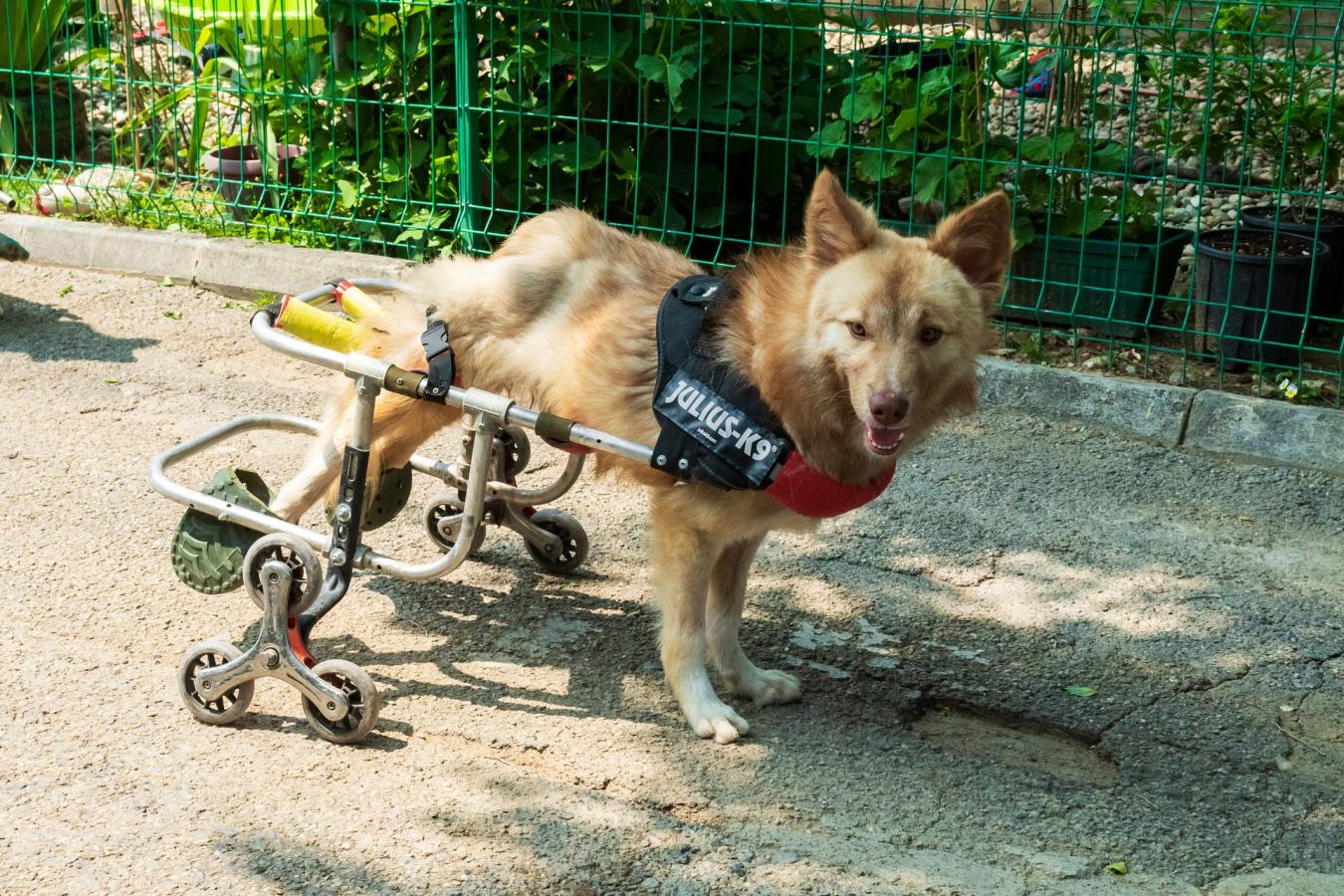 But he doesn’t seem to care too much, as any puppy is far too confident and eager to explore the world, even in a wheelchair. Șumi has grown bigger, even more handsome, and all day long he roams the kennel yard with his friends, also in their supportive strollers.